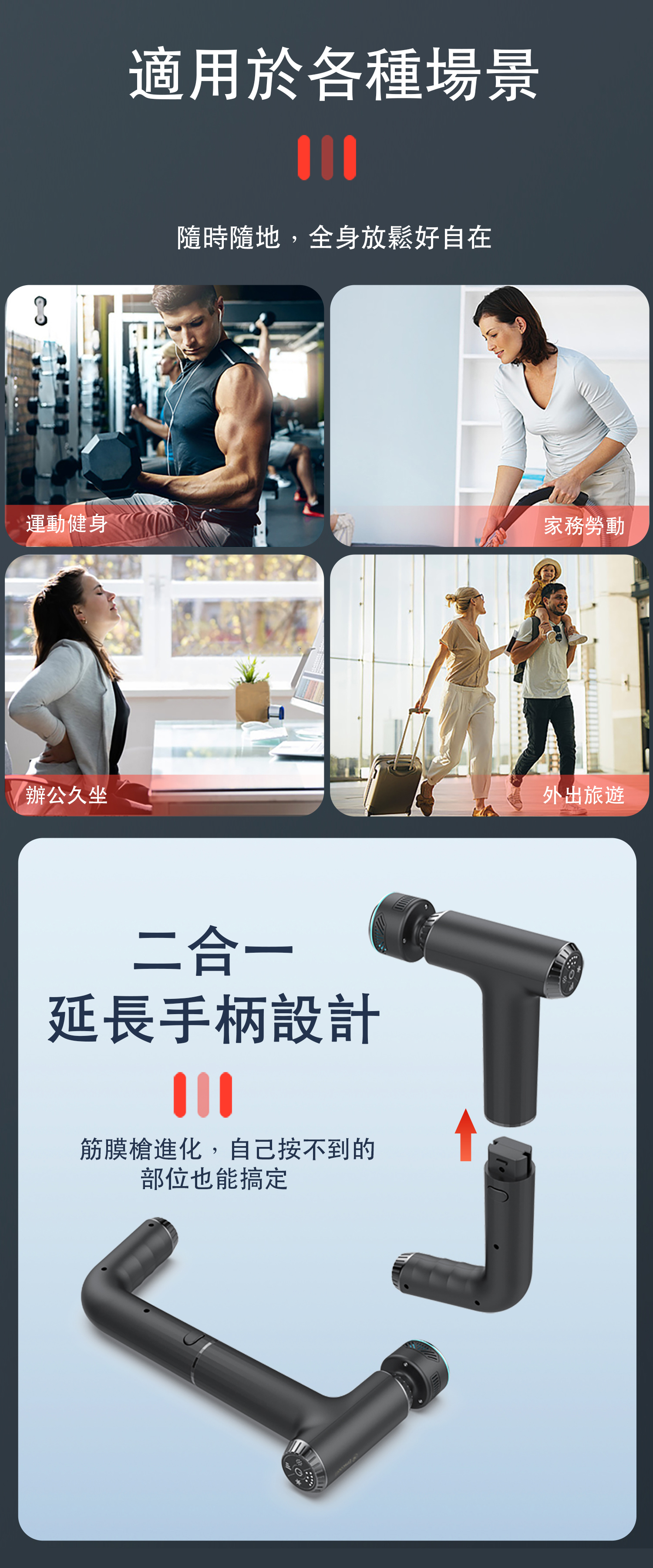 ★二合一延長手柄設計,按摩不求人
