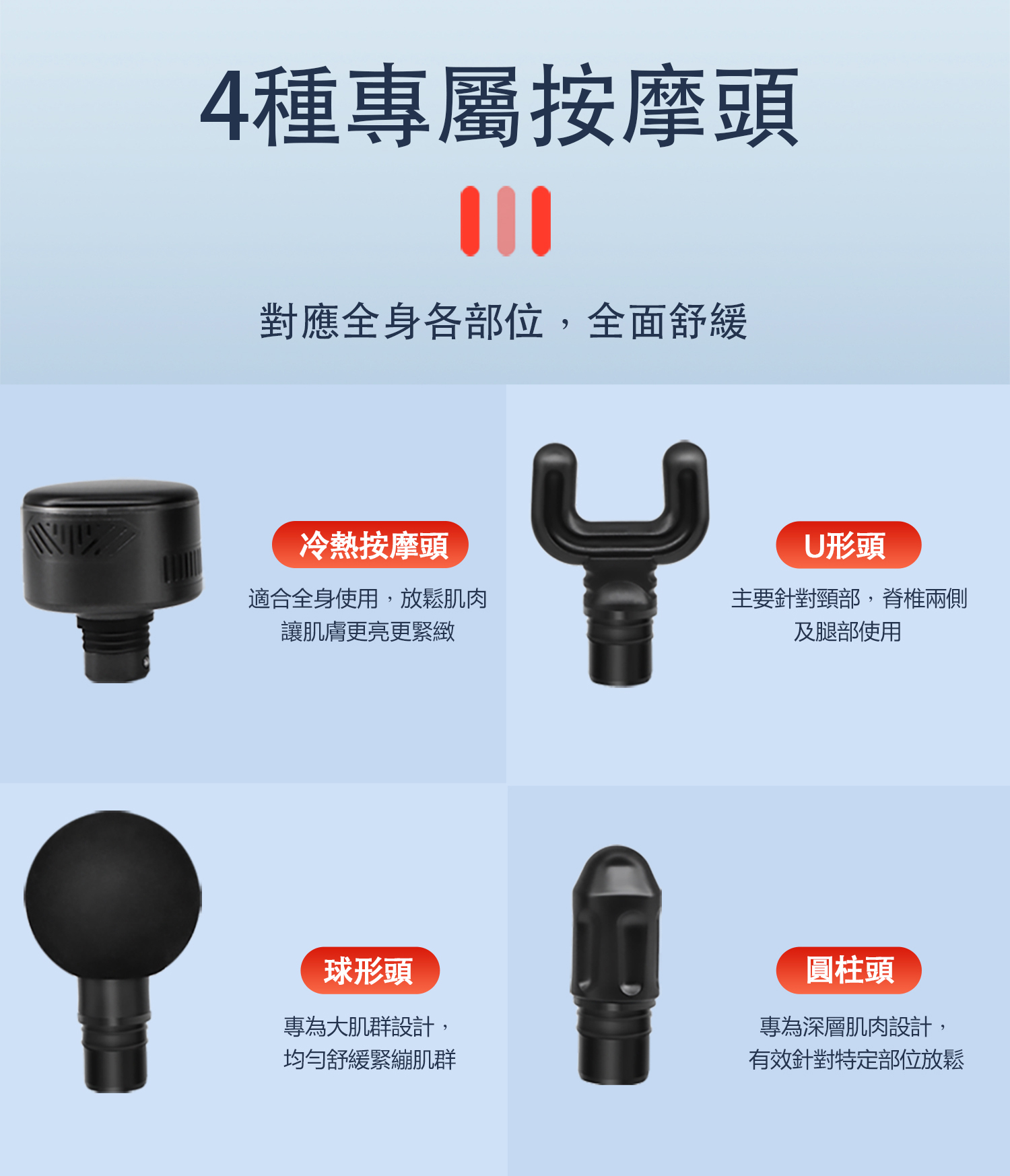 ★四種專屬按摩頭,全面舒緩