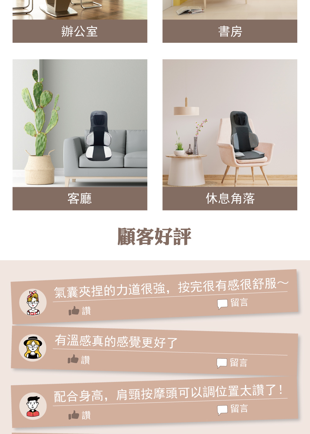 ★肩頸深層揉夾指壓,啟動溫感更舒服