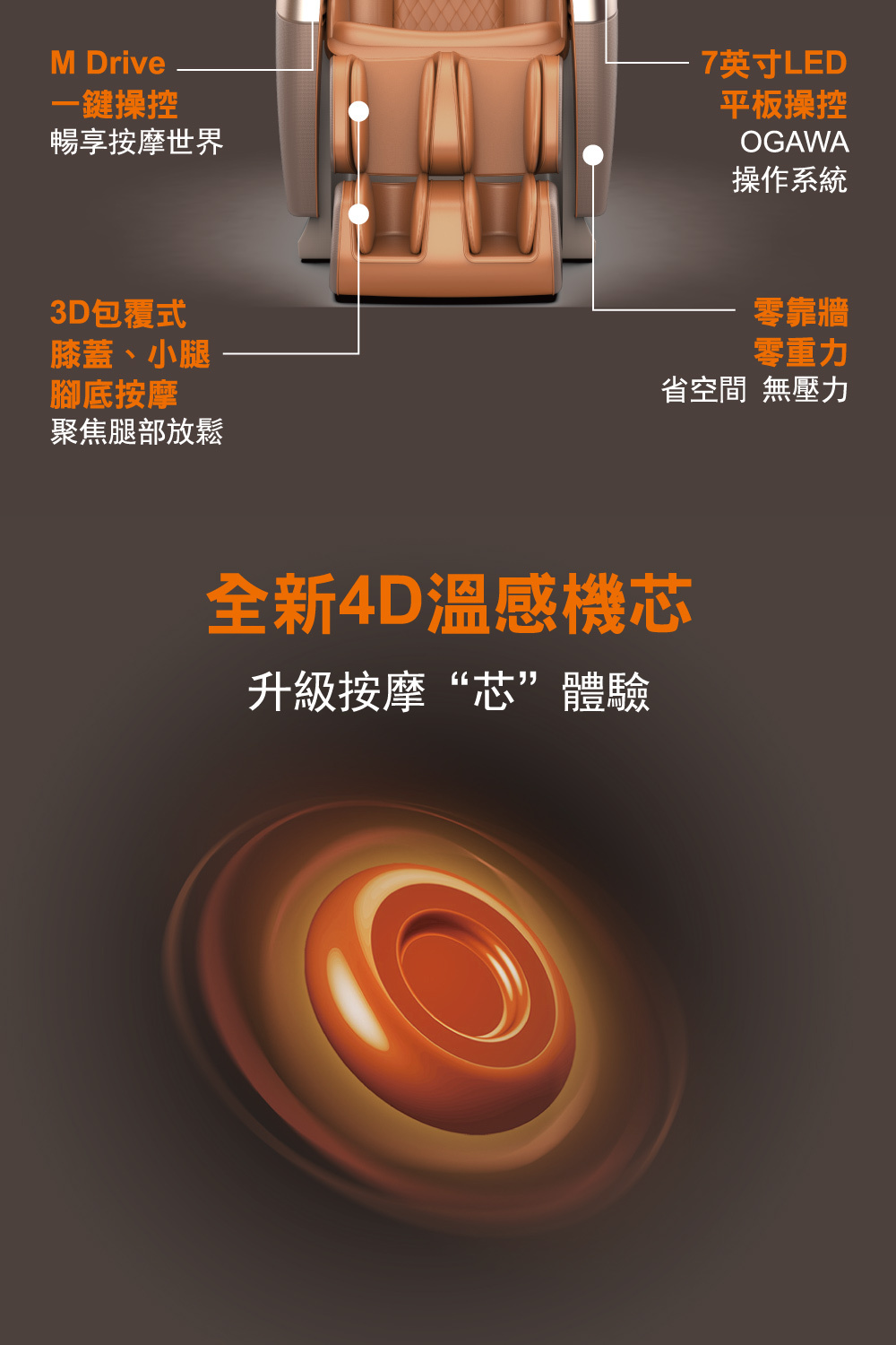 ★全新4D溫感機芯,50°溫熱按摩頭