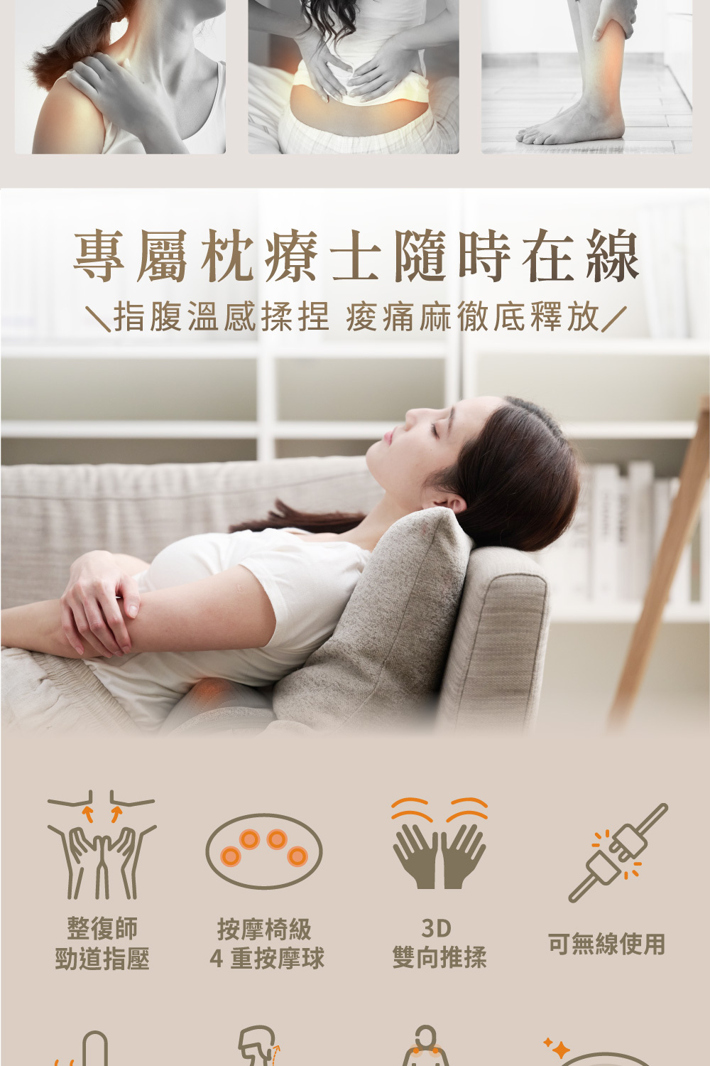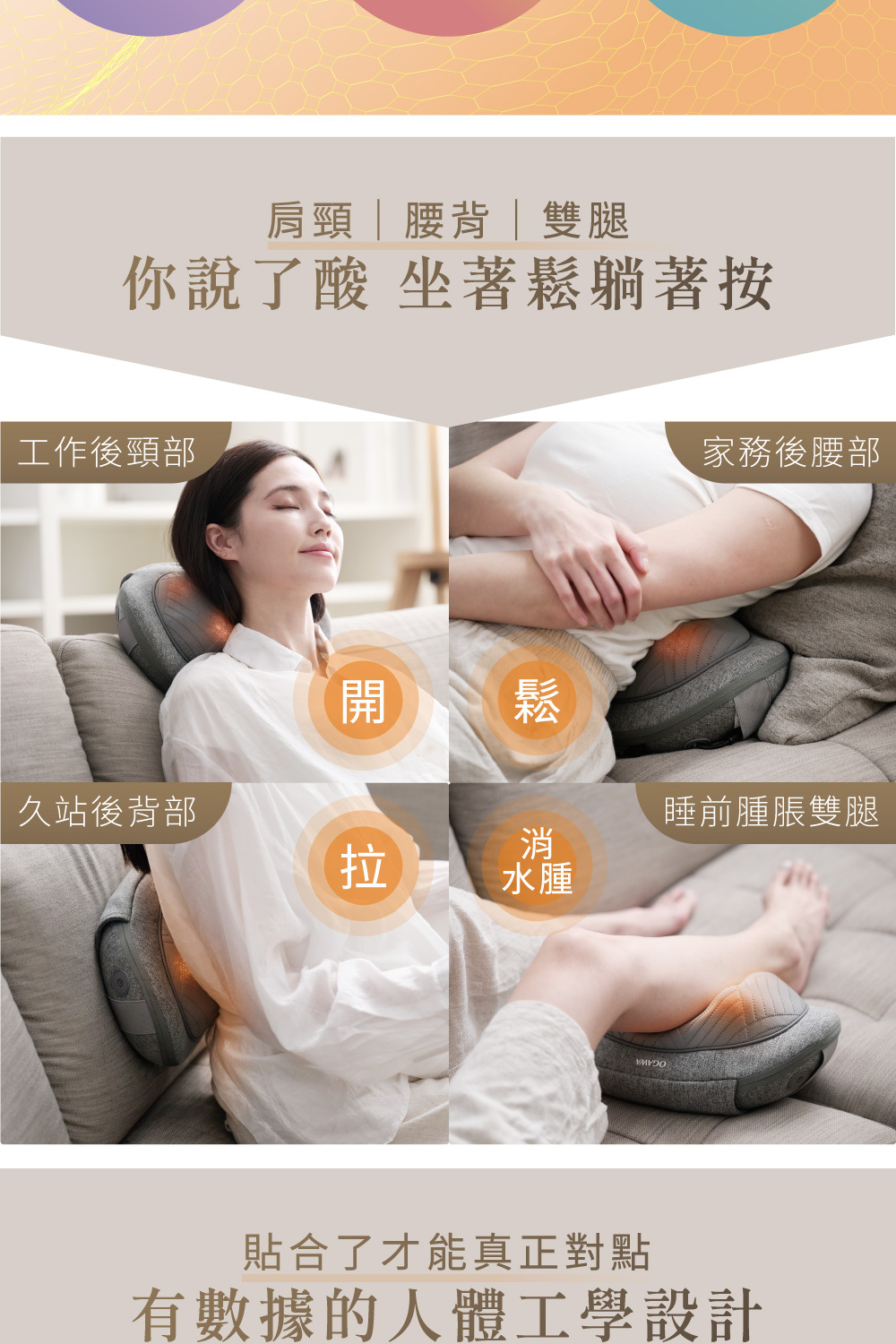 ★人體工學設計,緊密貼合腰/頸/背/腿 痠痛部位