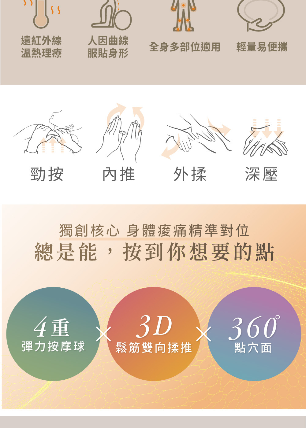 ★360 °點穴面,點點到位